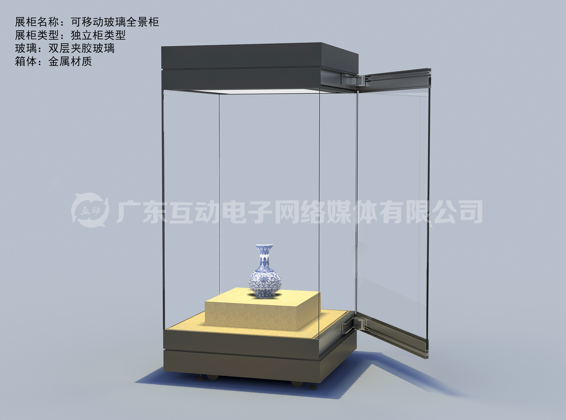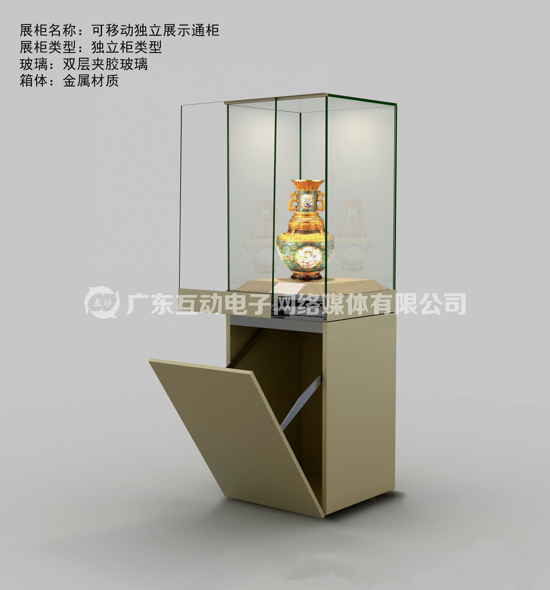 博物館可移動智能展柜具備燈光系統、恒濕調控系統、針對文物特性,對展柜內的溫濕度進行精確控制,以對文物的完整性起到保護作用;同時提供API物聯網接口,可擴展未來軟應用,智能化部件實現模塊化布局,可以快速實現規范化模塊的功能擴展。可制作多功能組合式展柜。適合場館間隔高度,適合大門進出。配備轆腳可移動。