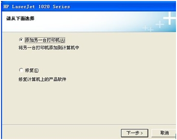 1.1.3點擊‘安裝’后出現提示是安裝一臺打印機還是修復本機程序,如果該電腦是第一次安裝這個打印機則選添加選項,如果以前有安裝過該打印機則點“修復”