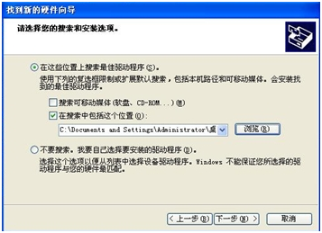 1.2.3 這里我們選‘在搜索中包括這個位置’,然后點‘瀏覽’按鈕,找到我們驅動所放位置即可,再下一步