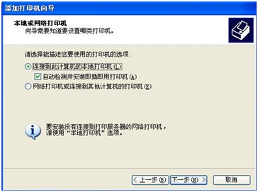 2.4. 點擊下一步后可以選擇添加的是本地打印機還是網絡打印機,這里我們選擇添加本地打印機,如圖: