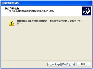 2.5. 點擊下一步后如果機器能自動檢測到打印機,驅動程序將自動安裝完成。如果機器不能檢測到打印機,會出現如下提示: