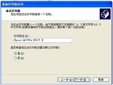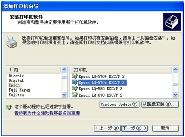 2.8. 這里需要我們去手動選擇相應的廠商及機型,Epson LQ-570e。如果系統里面沒有我們需要的打印機驅動,可到網上下載相應的驅動程序進行安裝,方法參考上面1.1及1.2的安裝方法。