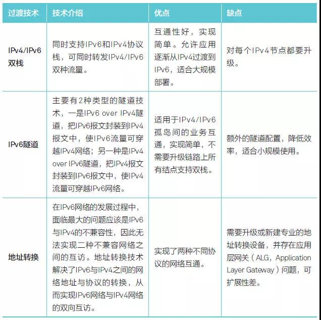目前,業界主要的過渡技術有IPv4/IPv6雙棧、IPv6隧道和地址轉換。