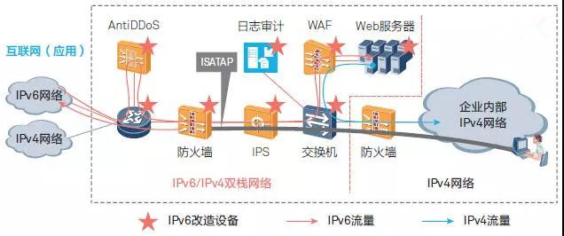 對于這類企業,我們建議采用此方案實現最低成本的IPv6過渡和改造。