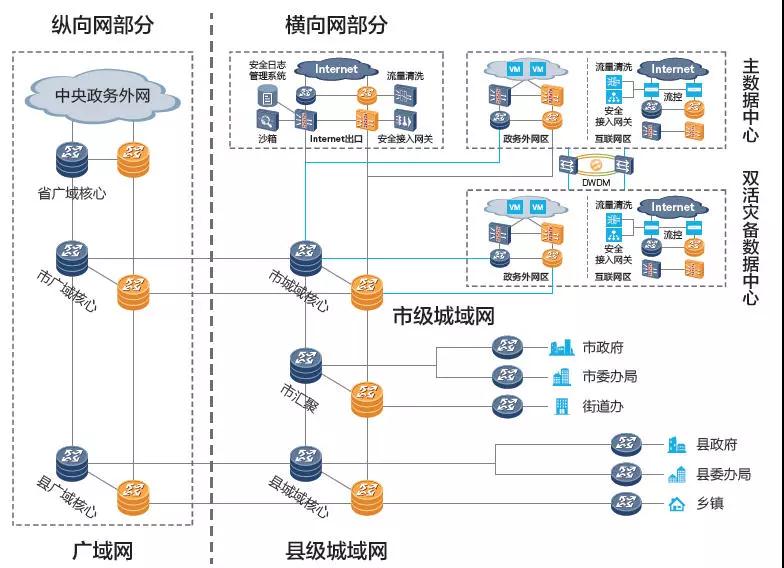 政務云網絡:由于政務云數據中心網絡承載了眾多委辦局業務系統,不同委辦局的IPv6升級節奏也各不相同,為兼容各業務系統平滑演進,建議把網絡升級成IPv4/IPv6雙棧,可同時承載IPv4/IPv6兩種流量,各委辦局可根據自身演進節奏靈活選擇接入方式。