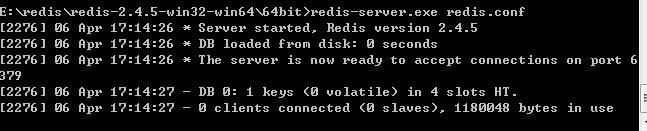 切換到E:/redis/redis-2.4.5-win32-win64/64bit目錄下運行: