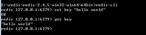 先設置鍵值對set key “hello world”,而后取出鍵值對get key