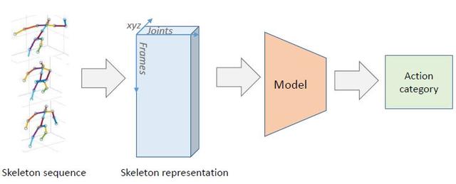 圖 1:基于骨架的人體動作識別的工作流程