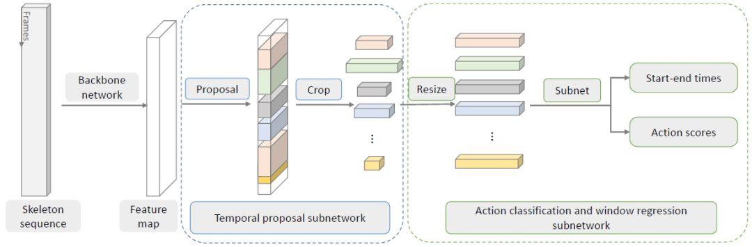 圖 5:時間動作檢測框架。圖 3 描述了其中的骨干網絡。還有兩個子網絡分別用于時間上提議的分割和動作分類。