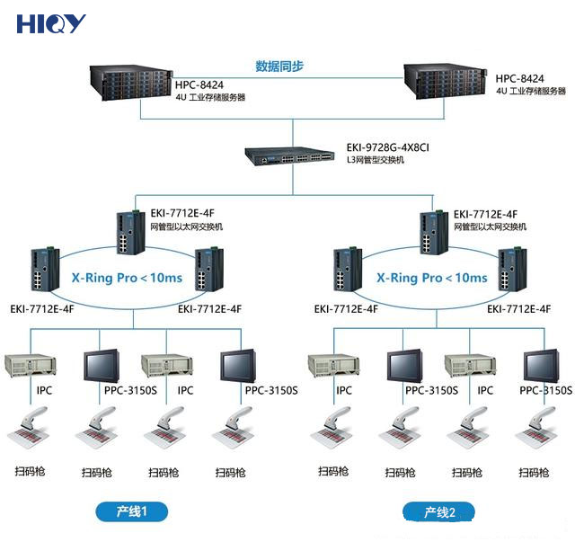 其次針對網絡改造設計部分:因客戶要求雙核心網絡架構,著重在整個網絡冗余備份,所以我們推薦使用互動EKI-7712系列工業級管理型交換機,通過互動特有的X-ring環網冗余協議,避免數據傳輸中斷,小于20ms的自愈時間,完全能滿足客戶需求。另外,客戶在網絡改造的同時也要求后續的網絡系統維護管理,互動專利IXM技術-自動布建,交叉網管專利協議,能實現客戶在管理運營上的需求。在核心層部分,我們同樣推薦客戶使用EKI-9728G三層網管交換機,作為不同系統之間匯聚角色,并且負責與服務器數據處理系統串連。各車間的數據,透過兩路光纖與核心層交換機連接,避免當端口出現故障,而造成數據丟失,另外,一旦發生核心層交換機故障時,互動EKI-9728G配有端口Auto pass的功能,能在設備故障時,仍進行數據通訊,為整個網絡架構提供最穩定的保障!