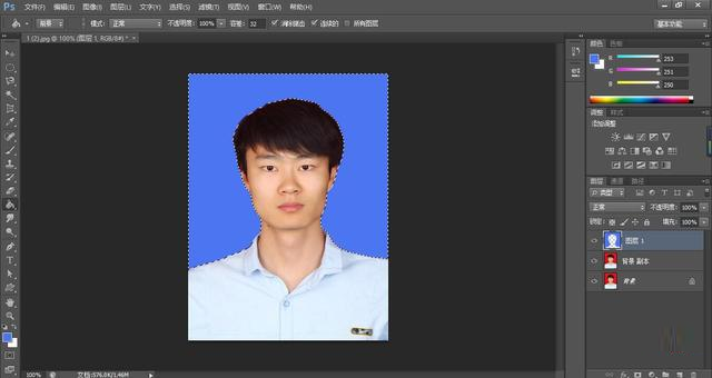 證件照的類型很多,主要表現在背景上,比較常見的有白底、紅底和藍底,有時手頭上只有某種顏色的照片,但又需要不同背景的,再去拍照麻煩也浪費錢,其實可以利用PS進行換底操作,不過對于邊緣頭發絲較多特別是女生的證件照要進行換底還是需要一定技巧的,本例中通過紅底替換藍底來進行講解演示,其它顏色互轉類似,有需要的朋友可以一試。