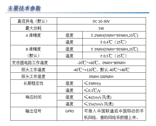 本溫濕度變送器是一款工業級的GPRS型溫濕度變送器,將單獨某一位置的溫度、濕度通過運營商網絡傳輸到服務器。利用“中國移動”、“中國聯通”通訊運營商已架設通訊網絡實現遠距離的溫度、濕度的采集、存儲、數據共享和遠程傳輸,減少現場施工的工程量。