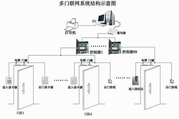 從電鎖到控制器的線,如果線長小于50米,要求使用截面積1.0平方毫米的兩芯電源線,無需屏蔽,如果超過50米請布加倍布多一條兩芯電源線,并聯供電。如果線長大于100米,建議將控制器挪近門電鎖的位置,以縮短布線距離。