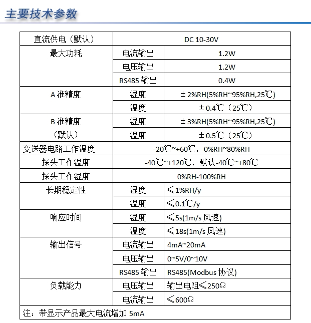 本溫濕度變送器采用外置全金屬溫濕度傳感器,防塵濾芯采用銅顆粒燒結,防水透氣且靈敏度較好,尾部采用銅質鎖緊頭美觀大方。溫濕度傳感器核心進行了本公司獨有的防水工藝處理,可防雨雪,適合測量室內、室外環境使用。輸出信號類型分為RS485\4-20mA\0-5V\0-10V等。