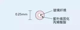 覆有直徑為0.25毫米紫外線固化丙烯酸樹脂涂敷層的光纖。其直徑非常小,增加了光纜內可容納光纖的密度,使用非常普遍。