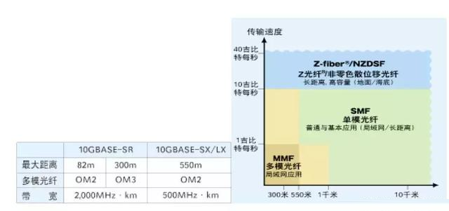 多模光纖(MMF,Multi Mode Fiber),纖芯較粗,可傳多種模式的光。但其模間色散較大,且隨傳輸距離的增加模間色散情況會逐漸加重。多模光纖的傳輸距離還與其傳輸速率、芯徑、模式帶寬有關。