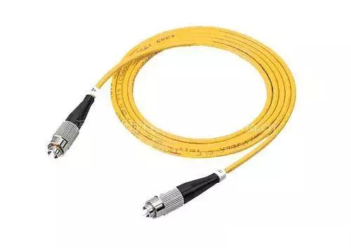 該圖為FC/PC型光纖跳纖(非正規叫法是雙頭尾纖),英文名為PATCH CORD即兩頭帶光纖連接器的軟光纖,用于設備至ODF架的連接以及ODF架之間的跳接。光跳線顏色為黃色,表示單模跳纖。
