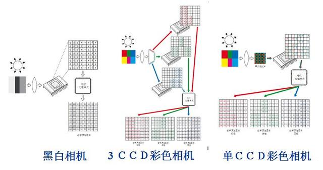 這樣以來,每個CCD就只對一種基本色分量感光。這種解決方案在實際應用中的效果非常好,但它的最大缺點就在于,采用3個CCD和棱鏡的搭配必然導致價格昂貴。因此科研人員在很多年前就開始研發只使用一個CCD芯片也能輸出各種彩色分量的相機。