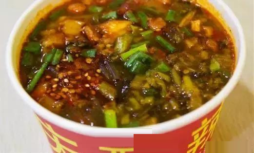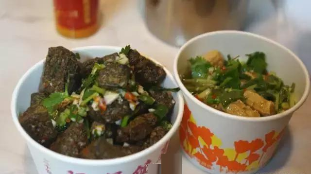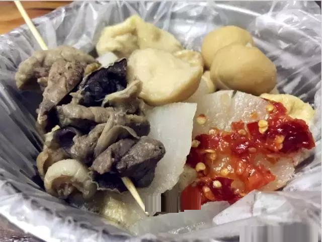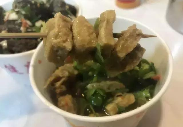 在這里還有一個很獨特的吃法,就是叫一串炸豆腐浸泡在酸辣粉里吃,讓炸豆腐充分吸收酸辣費的湯汁,吃完真的想要振臂歡呼呢!