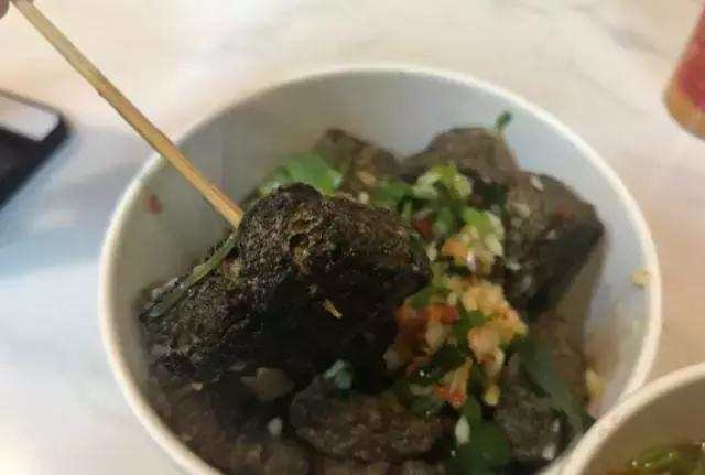 而長沙臭豆腐是黑色的,比傳統臭豆腐要辣,不能吃辣的孩子記得跟老板說要微辣就好了。