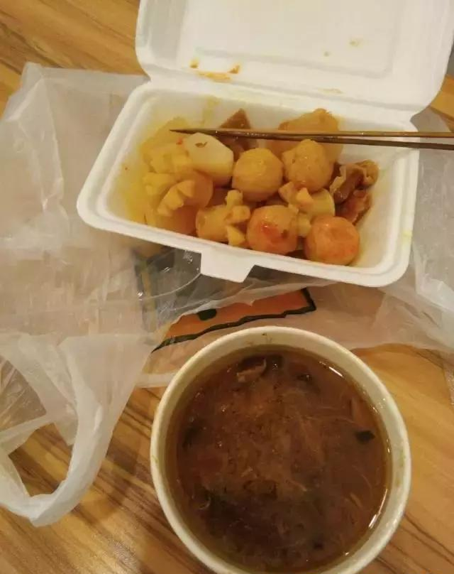 在這里十幾塊可以吃到好幾樣菜式,再點上一碟嫩滑的朱紅和爽口的番薯粉,就著麻辣燙的湯底吃,對于沒有多少錢的學生哥,真的是完美的選擇呀!