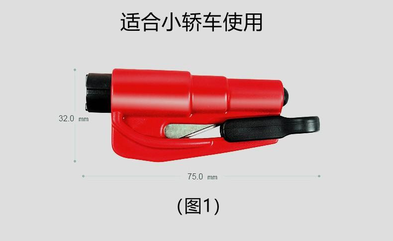 圖1所示的救生錘,適用于小轎車,可以與鑰匙放在一起,掛在腰間隨身攜帶,隨手可取,方便使用。