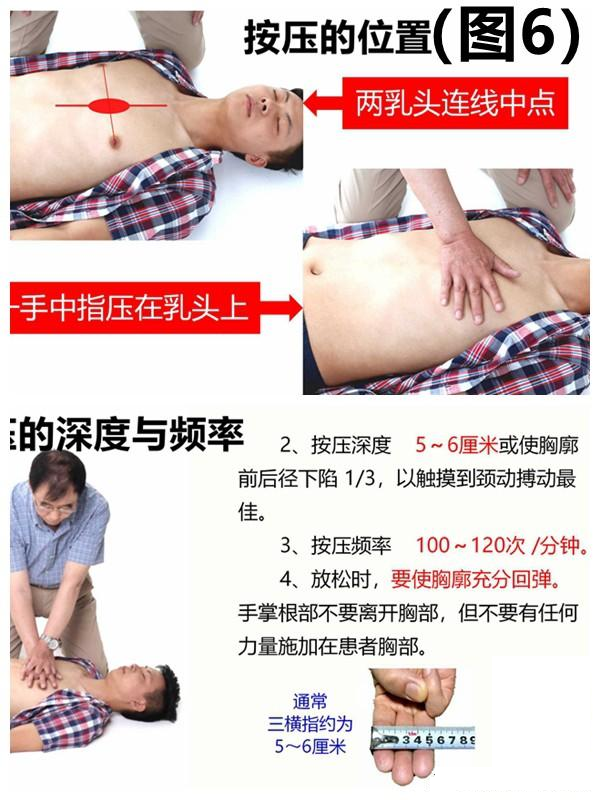6、此后,每做2次口對口吹氣,則做30次胸外心臟按壓。直到患者恢復呼吸、心跳,或救援人員到達。