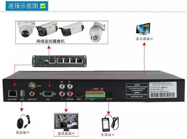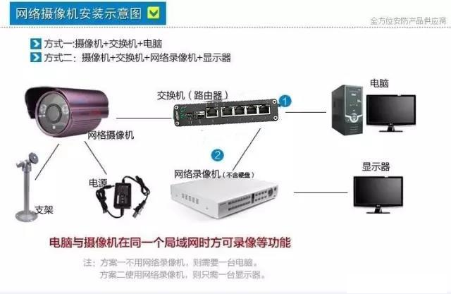 前端攝像機在供電正常的情況下,通過網線和交換機可以將捕捉到的信號傳輸至后臺的硬盤錄像機中進行預覽和存儲。針對監控系統點位的不同,連接方式有所不同。