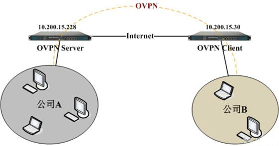 接下來我們需要在另外一臺路由器配置 OVPN客戶端,如下面的拓撲圖,將 2臺路由建立 OVPN連接: