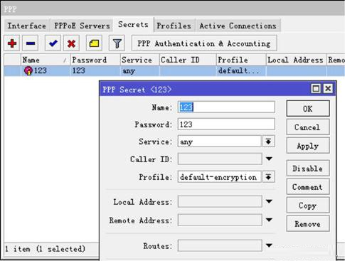 進入 ppp secret添加用戶賬號