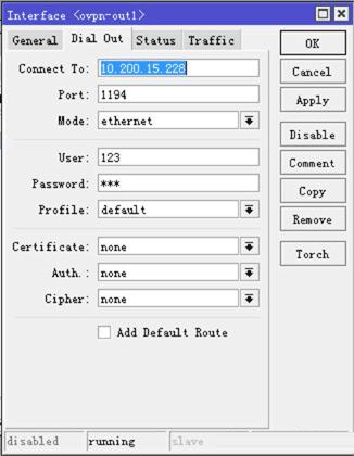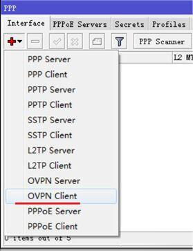 通過這兩個 WAN地址建立 OVPN的互聯,我們在 OVPN Client建立 ovpn-client撥號,打開 PPP, 在 interface里點加號,選擇 ovpn-client