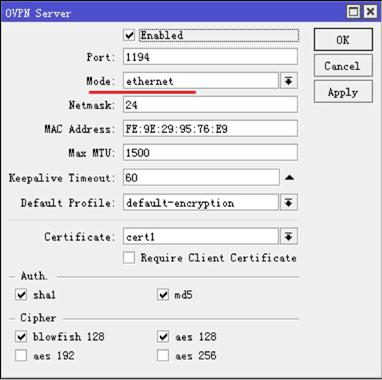 這里我們需要將 OVPN Server和OVPN Client的模式修改為ethernet