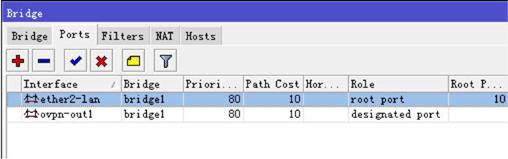 設置完成后,我們建立 OVPN Client與 OVPN Server的連接,在 bridge的 port里,我們可以看到123賬號的連接在 port被自動添加