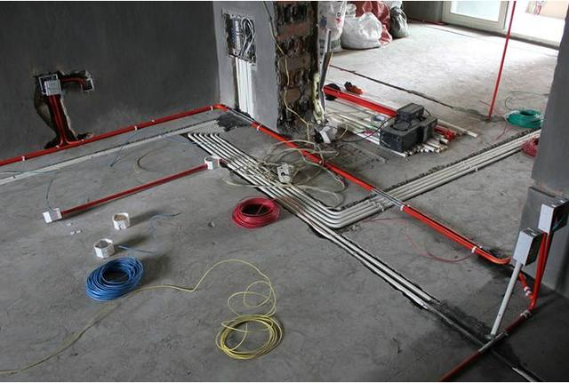 暗敷布線——指線路沿墻體內、裝飾吊頂內或樓層頂內敷設,不能直接看見線路走向的稱暗敷布線。在建筑施工中,室內照明插座、弱電線等穿管固定后,被澆筑在水泥板中,澆筑完畢后不可更改。在家裝中,通常在墻上開槽走管線到插座或開關或小型電箱。需要穿過整個房間時,通常是在地面開槽走管線。也可以利用吊頂或屋頂陰角線走管線。