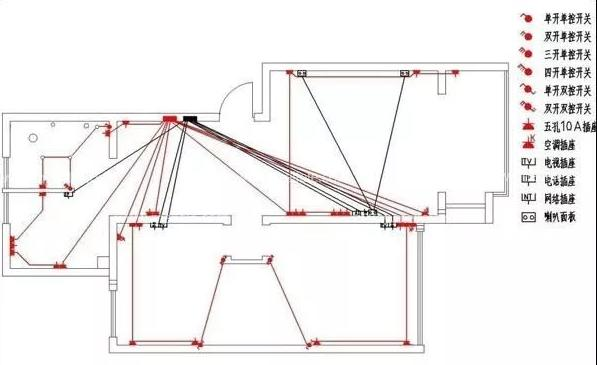 明暗混合布線——其特點是,一部分線路可見走向,另一部分線路不可見走向的敷設方法。如在一些室內裝飾工程中,其電氣設計,在墻身部分采取暗敷布線,進入裝飾吊頂層部分則為明敷布線了。