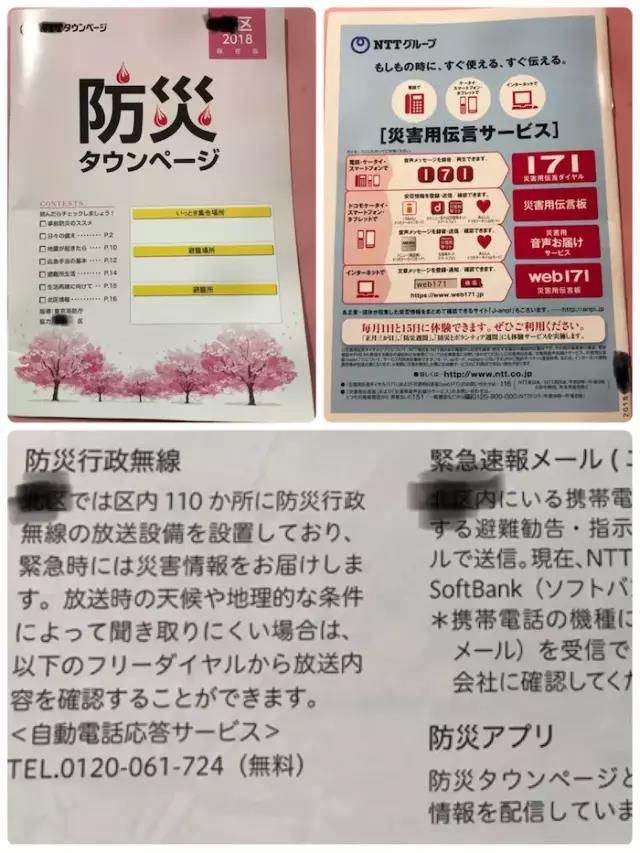 日本的一些電話通訊公司為了讓顧客更好防范地震等各種災害,免費贈送給服務區內的顧客一本防災手冊。以下圖片中的《防災手冊》,從2018年10月份左右,日本某通訊公司免費贈閱給東京內每個客戶家庭。作為舉例,僅供參考。