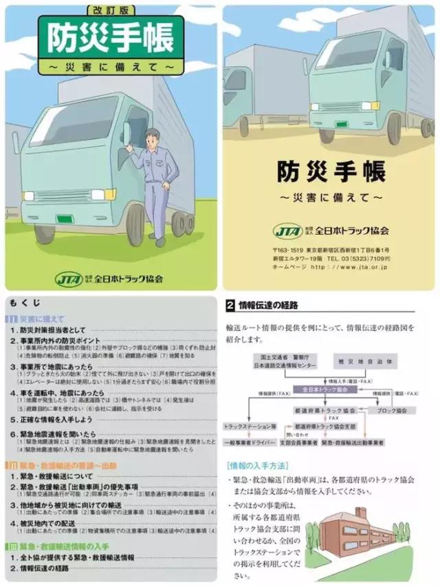 以下圖片是日本貨車協會在其官網上對外公布的,該行業專用的“防災手冊”。作為舉例,僅供參考。
