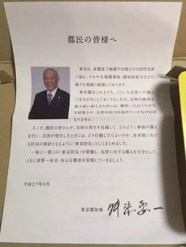 東京都政府為了讓市民更好地防范地震等各種災害,組織專家編制了一本防災手冊,從2015年9月1日起已經陸續發放給了東京內的各個家庭。該手冊的內容包括:地震救災演習、災后生存技巧、防災方法、應急措施、應急清單,以及防災知識等。