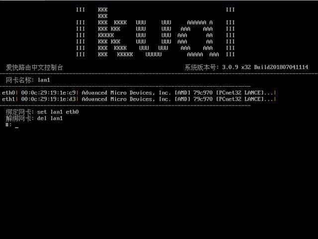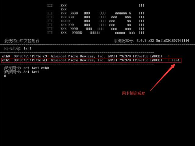 登錄路由用的網卡綁定成功如圖:輸入命令:q 回車退出返回主菜單。