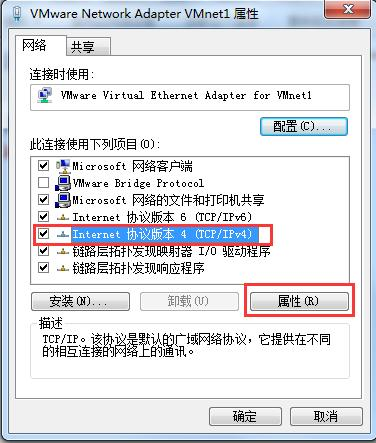 出現如下圖右鍵點擊:VMware Virtual Ethernet Adapter for VMnet1 選擇-屬性: