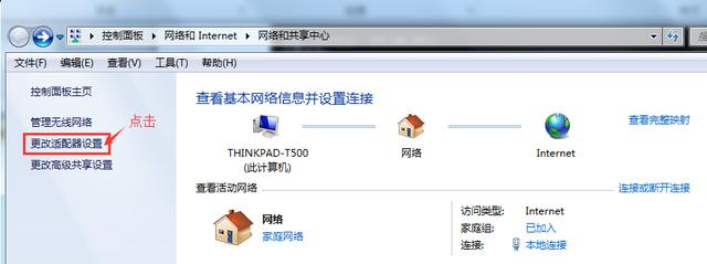 提示:這是windows7系統設置方法,打開網絡和共享中心-更改適配器設置