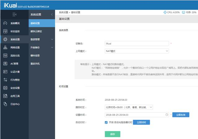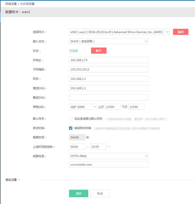 設置好后點擊:保存 完成設置。下面圖是軟路由ikuai圖片展示