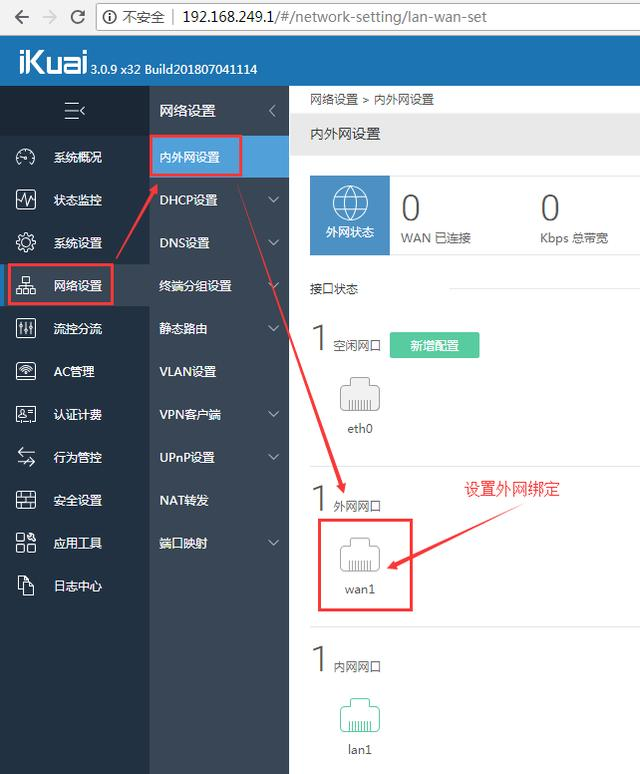 打開瀏覽器輸入:192.168.249.1 回車登錄,設置wan1外網綁定