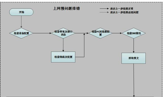 MSR上網慢問題通常有多種因素導致,比如配置、線路、DNS、瀏覽器、訪問的網站故障等等問題,排查起來,相對于斷網而言,更加難于處理,一般定位故障的思路是:先檢查設備配置,檢查帶寬及狀態,檢查PC瀏覽器配置,檢查DNS情況,抓取報文。
