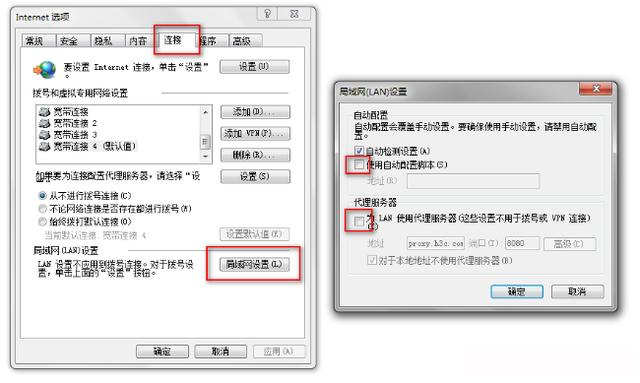 當確認接口和帶寬情況均處于正常情況下,建議檢查一下PC瀏覽器設置情況,檢查終端設備是否開啟了代理,開啟代理之后,有些情況下也會導致上網慢,檢查瀏覽器代理,可以通過如下方式進行,在瀏覽器上點擊“工具”→“Internet選項”→“連接”→“局域網設置”進行查看: