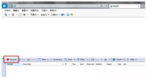 首先安裝httpwatch,安裝完成之后,打開瀏覽器,點擊瀏覽器上的httpwatch圖標,即可調出該插件界面,如下,點擊“record”開始記錄網頁訪問過程。