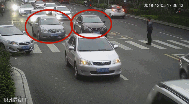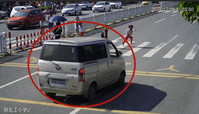 行人未跨越綠化帶延長線時,2車道上的機動車可通行,1車道應禮讓;而當行人跨越綠化帶延長線時,1、2車道都應禮讓。