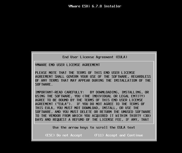 啟動后的安裝步驟可以說是一路下一步,懂點英語的相信毫無壓力(不同版本都差不多,較新版的ESXi要求起碼4G內存,不過可以繞過這個驗證,網上有教程,這里不贅述):