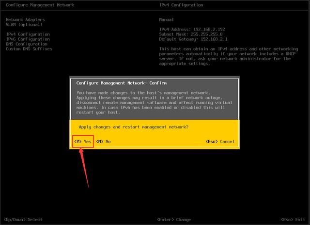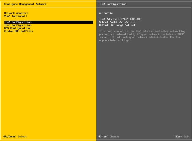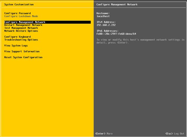 選擇 "Configure Management Network"(注意先選下網卡NetworkAdapter,如果驅動正常應該能看見多張網卡,插拔網線有在網卡那兒有提示哪個網卡連接上了,可以以此區分網卡):