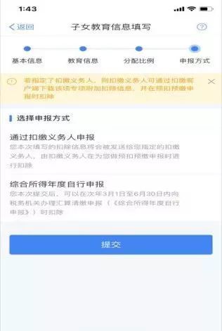 電子和紙質信息表都可以在稅務機關網站上下載。其中,選擇在扣繳單位辦理扣除的,您可以直接將紙質或電子表提交扣繳單位財務或者人力資源部門,也可以通過手機APP或網頁填寫后選擇推送給扣繳單位,這樣單位每月發工資時就可以為您辦理扣除。如果您想直接向稅務機關申報,可以在第二年匯算清繳時將有關信息提交給稅務機關后辦理退稅。